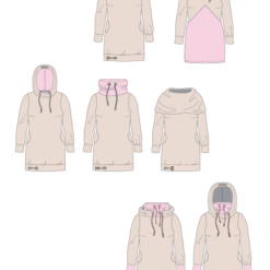 La Silla ist ein Wohlfühlsweatkleid für den Alltag. Mit den verschiedenen Add ons ein toller Allrounder für jede Frau. Im Schnitt sind mehrere Kragenvarianten enthalten. Kapuze, Stehkragen, Kapuzenkragen,Rundhalsausschnitt sowie ein kombinierter Kapuzenstehkragen. Das Kleid kann in knielang, kurz und als Longpulli genäht werden. Die Ösenpositionen für einen besonderen Look sind alle enthalten. Auch eine Schnittteilung ist möglich.